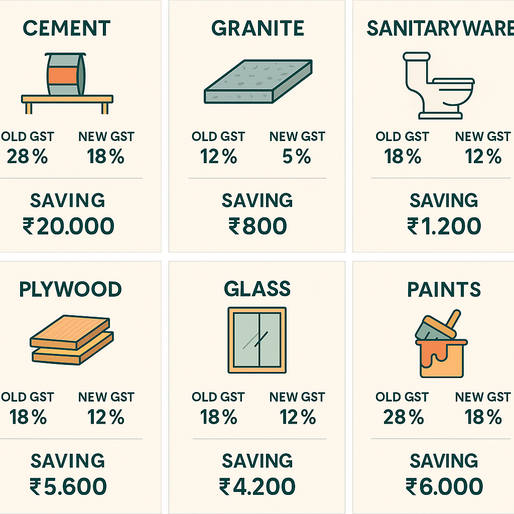 🏠 House Construction GST Savings — Old vs New (2025) Example